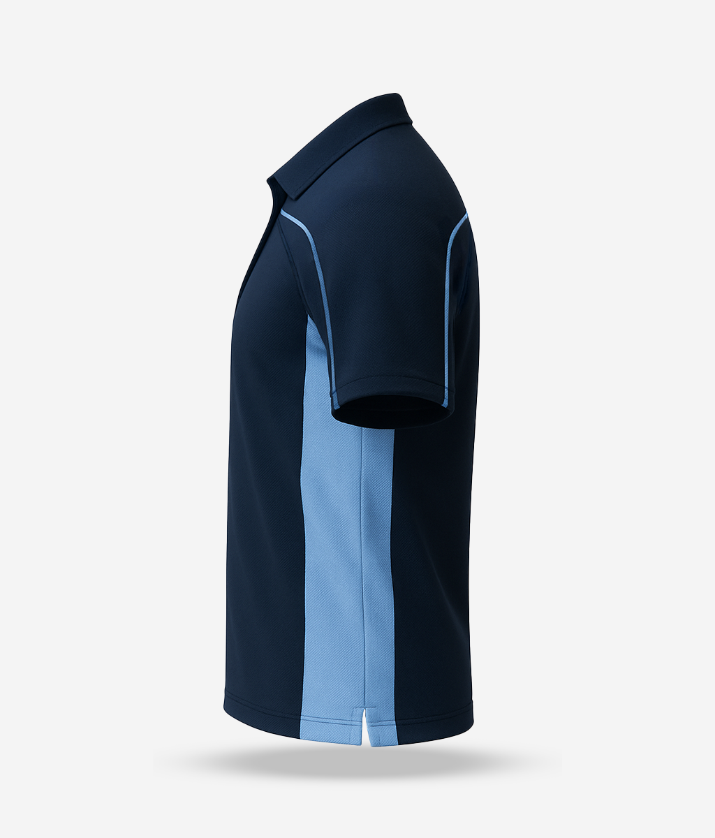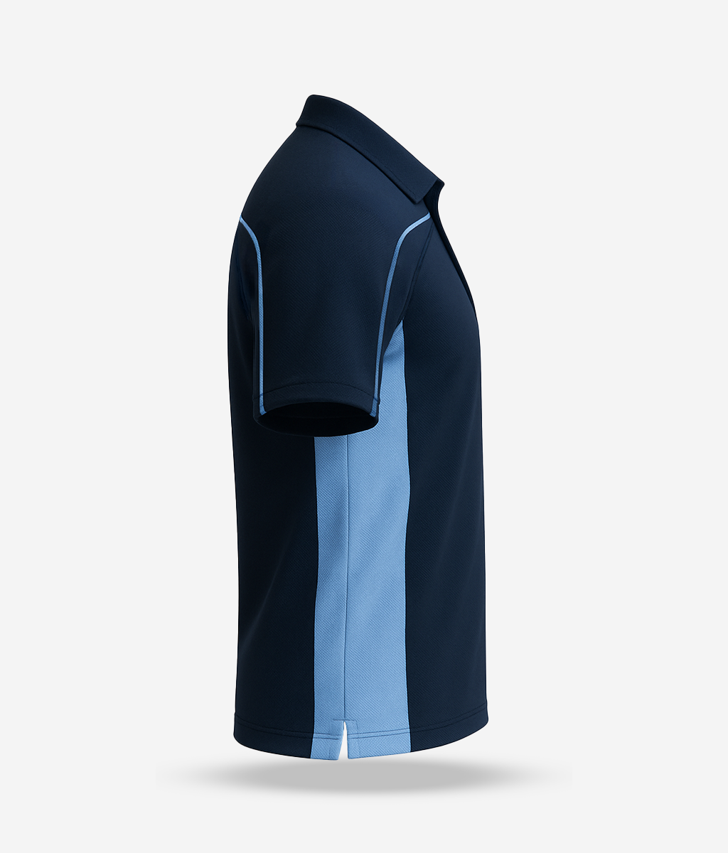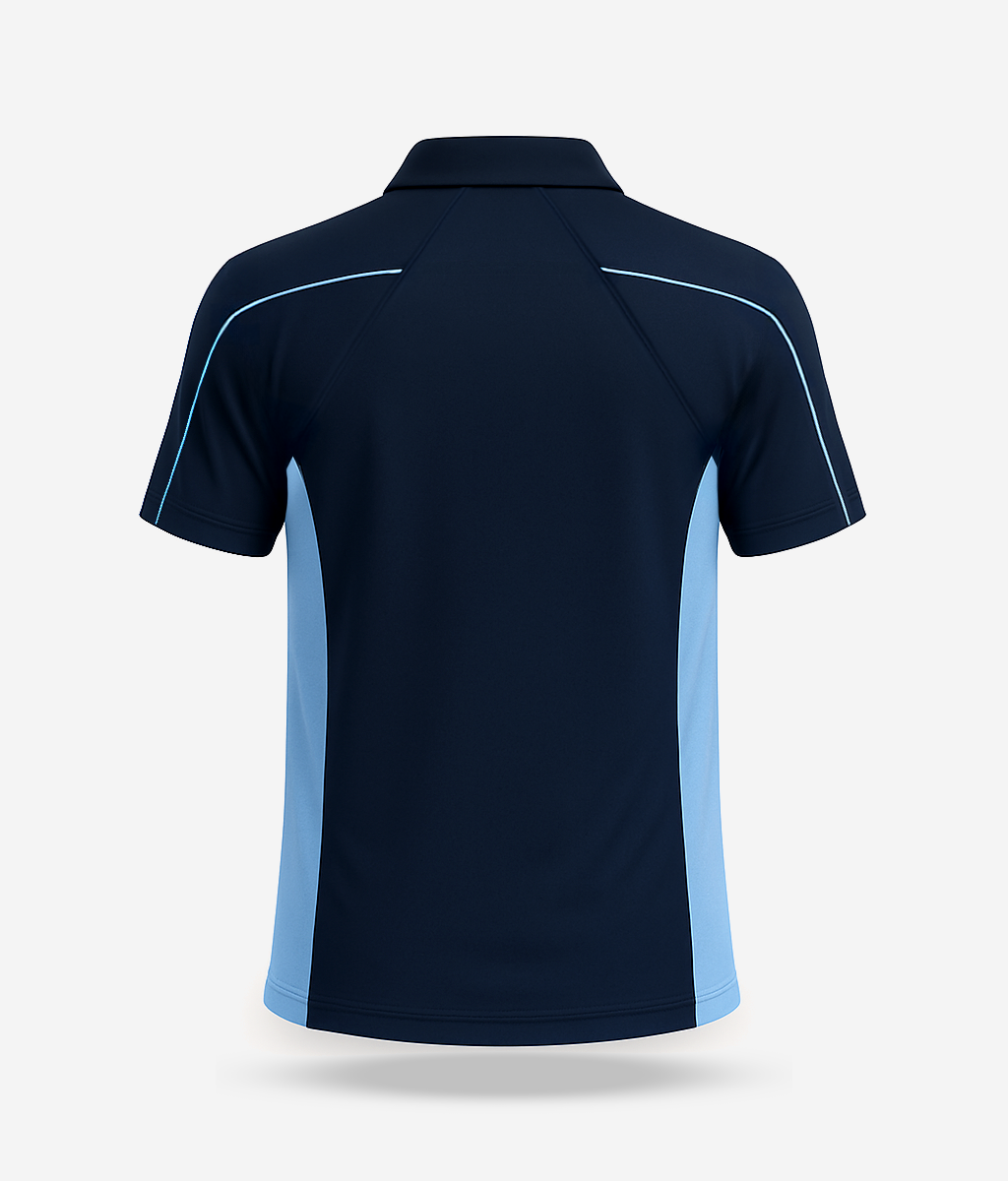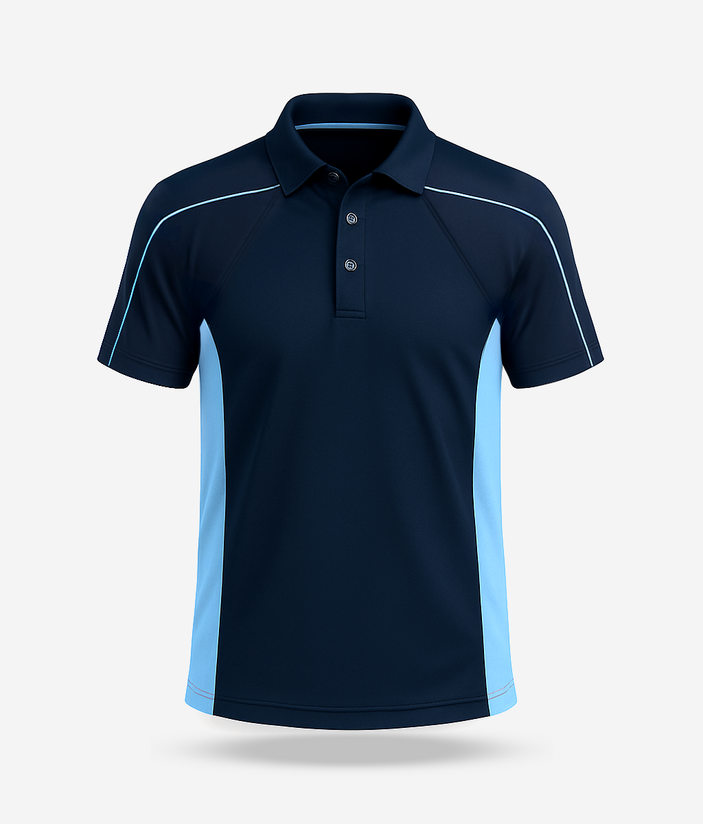 +The HDFC school's Sports T-Shirt is an essential part of the school’s athletic uniform, designed for students participating in sports and physical education across all grades. This half-sleeved T-shirt is crafted from lightweight, breathable fabric, ideal for comfort and flexibility during active movement. Featuring a smart polo collar with a three-button placket, the T-shirt offers a neat, functional look suited for both practice sessions and school sporting events.Its striking design combines deep navy with sky blue side panels and sleeve piping, giving it a modern, energetic appearance. The relaxed fit and moisture-wicking properties ensure students stay dry and comfortable throughout the day. Durable and easy to care for, the T-shirt is available in various sizes to accommodate all age groups. Whether on the field or during physical training, this T-shirt reflects TKH’s emphasis on performance, presentation, and student comfort.